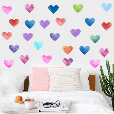 Watercolor Hearts Wall Decal - Colorful Wall Stickers