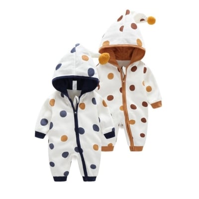 Baby Hooded Romper - Polka Dot Jumpsuit