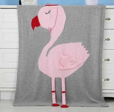 Cotton Knitted Flamingo Blanket
