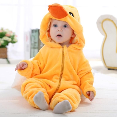 Hooded Flannel Romper Jumpsuit - Little Duck