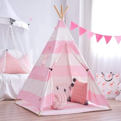 Pink Striped Teepee - Kids Play Tent