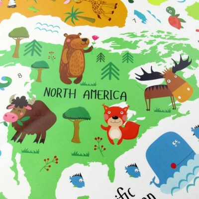 World Map With Animals Decal - I Love The World Wall Sticker