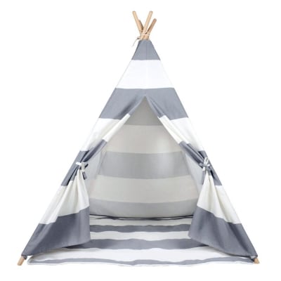 Grey Stripe Teepee With Mat - Kids Tipi Playhouse
