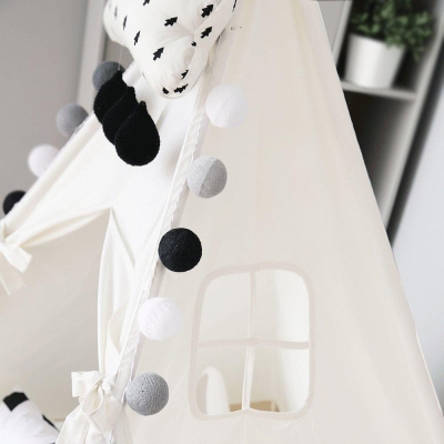Pom Pom Teepee - 5 Poles Play Tent - White, Pink