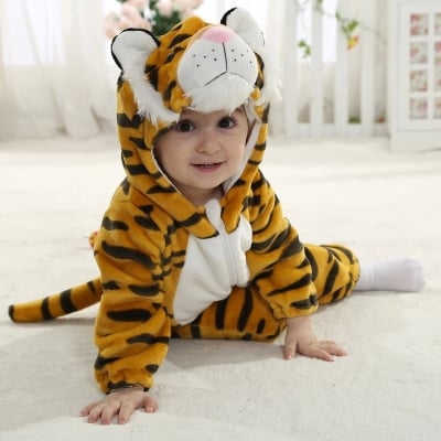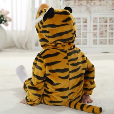 Hooded Flannel Romper Jumpsuit - Tiger