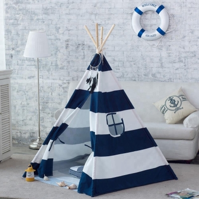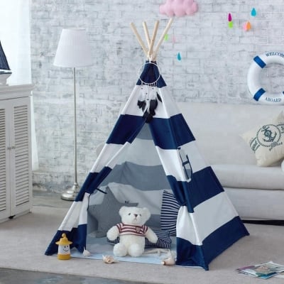 Navy Stripe Canvas Kids Teepee - Children Play Tent
