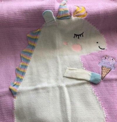 Get Enchanted - Unicorn Knit Blanket - Blue, Violet, Red, Green