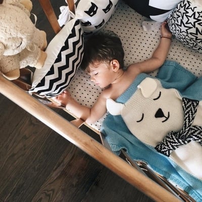 Soft Knitted Bear Blanket - Gray/Blue/Pink